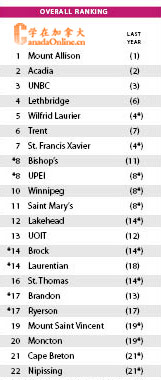 新一期加拿大大學排名加拿大時間11月10日出爐,此次排名跟過去一年的名次沒有什么特別的區(qū)別,從名次山只是作了微調(diào),沒有特別的浮動,醫(yī)博類波動比較大的是皇后大學(Queens University)從第三名降到第五。綜合類沒有任何的變化,只是增添了一所新的大學QUAM。而基礎類排名也沒有什么的變化。這已經(jīng)麥克琳雜志第20年出版加拿大大學排名,可以說今年的排名變化最少的一次,也是最沒有新意的一次。加拿大留學網(wǎng)(學在加拿大)對排名進行了整理,以下是具體的排名。