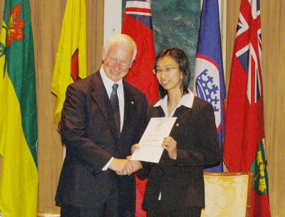 中新網(wǎng)5月26日電 據(jù)加拿大《世界日報》報道,24日下午,來自加拿大安省各地的84名杰出青年齊聚多倫多市中心的皇家約克酒店,由加拿大總督莊斯頓頒發(fā)愛丁堡公爵金章獎(Duke of Edinburgh),在獲獎的24位華裔青年中,有11人為多倫多展望青年領(lǐng)袖培訓計劃的學員。