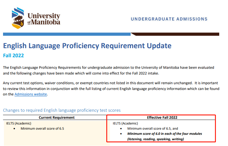 雅思6.5單科6.0(2022年9月入讀生效)