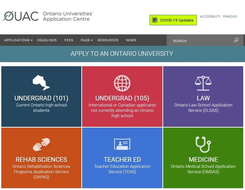 安大略大學(xué)申請(qǐng)中心Ontario Universities'Application Centre(OUAC),是安省大學(xué)的統(tǒng)一申請(qǐng)系統(tǒng)。OUAC申請(qǐng)系統(tǒng)又分為兩個(gè)通道,即101通道和105通道。